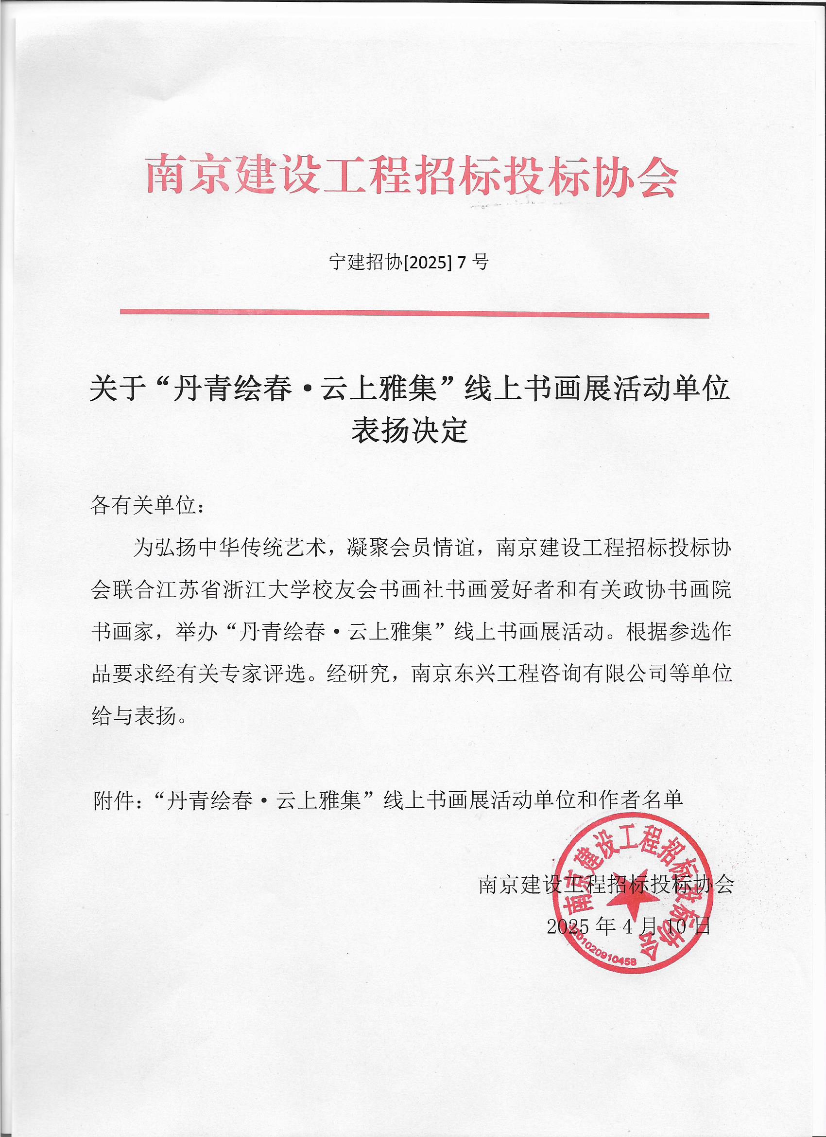 关于“丹青绘春·云上雅集”线上书画展活动单位表扬决定