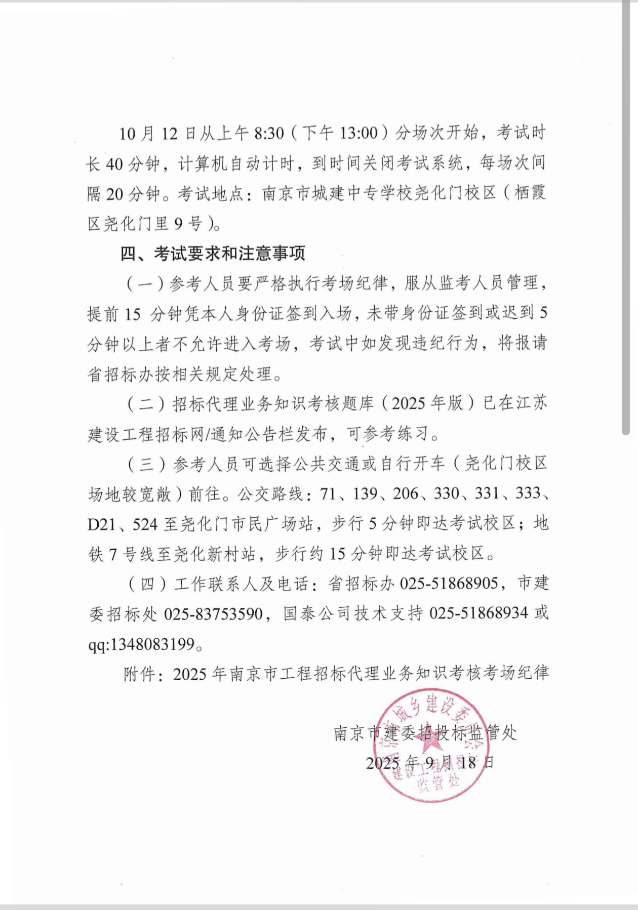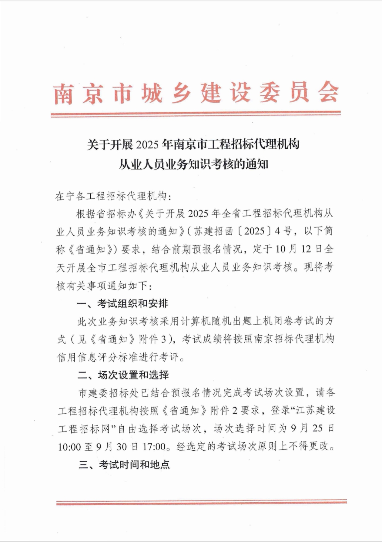 关于开展2025年南京市工程招标代理机构从业人员业务知识考核的通知