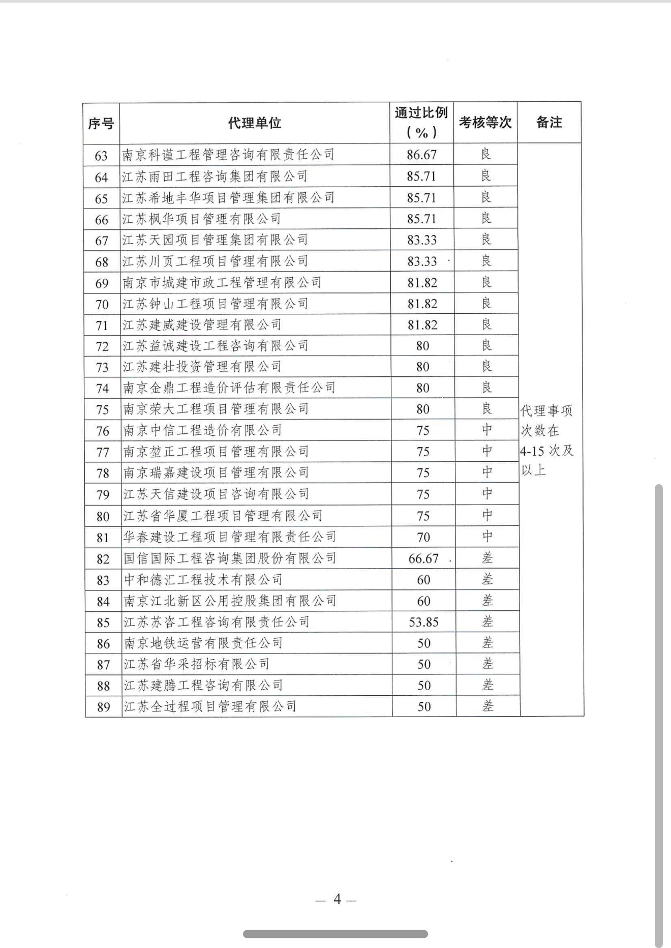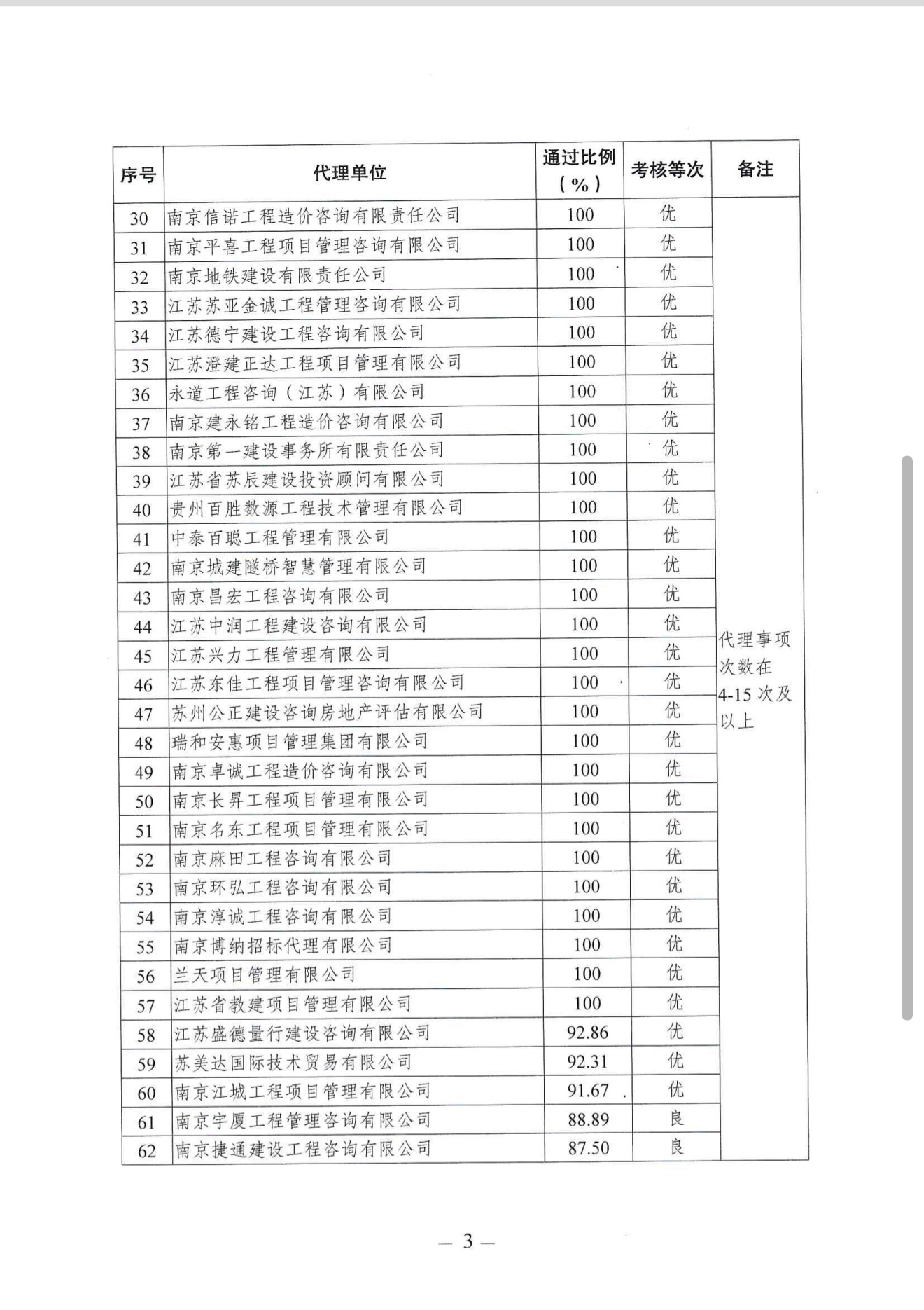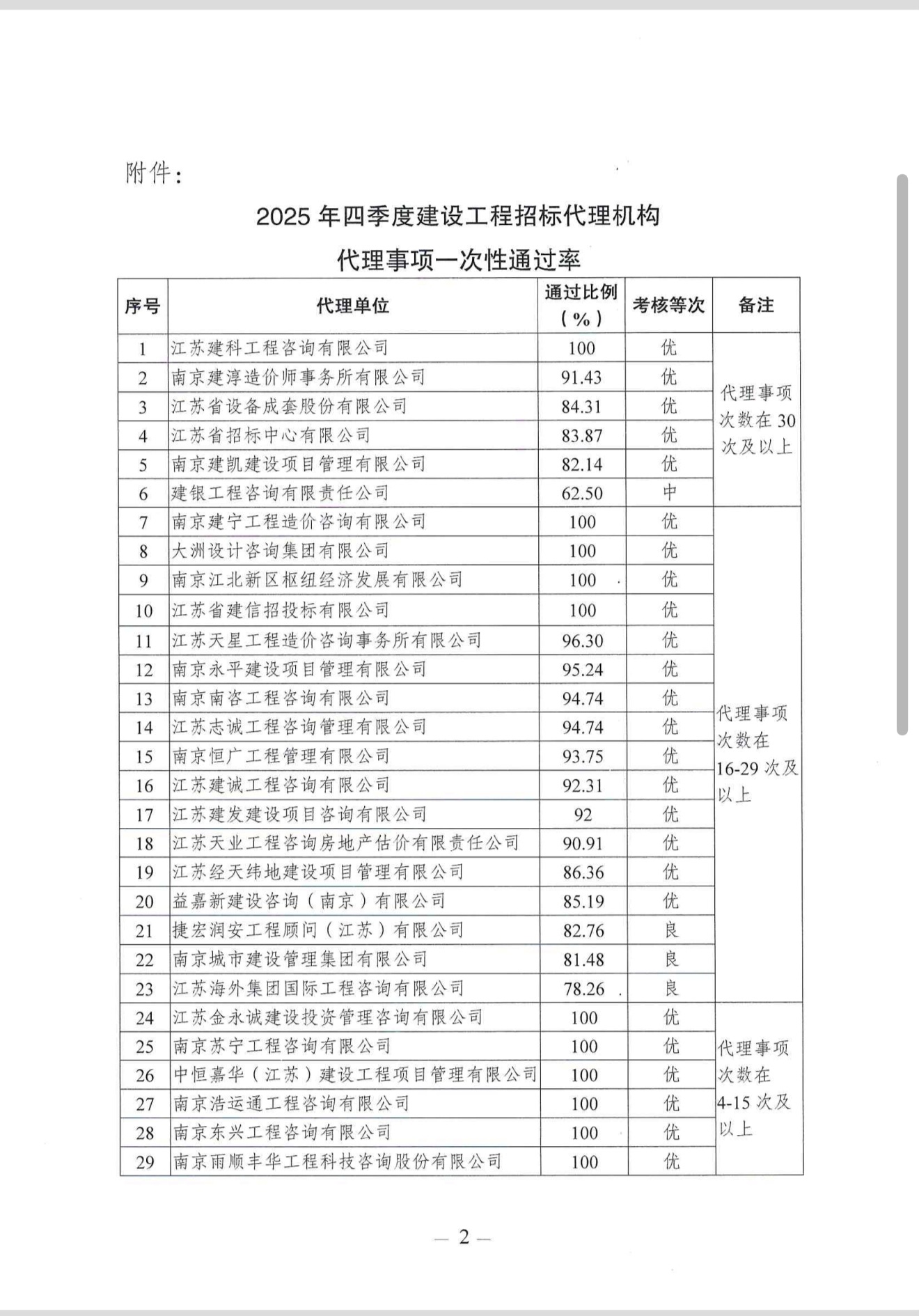 2025年四季度招标代理机构代理招标事项一次性通过率情况公示